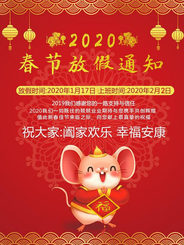 在這中國傳統的節日“春節”來臨之際,在此向各位拜個早年,預祝大家新的一年新春快樂,紅紅火火,財源廣進,全家幸福安康!