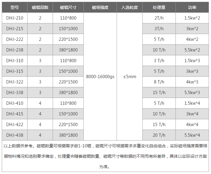 • 產品描述:DHJ輥式磁分離機是一種新型干選設備,可根據需求生產1-10層結構,實現物料的多次分選。該機對粉礦率較少但又均勻的中小顆粒狀礦石分選效果好,生產效率高,操作簡單方便。